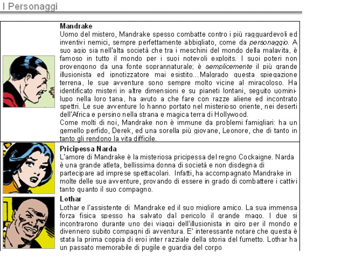 Dal un mago del fumetto, ad un mago a fumetti! Un vero classico e capostipite dei fumetti d’avventura, Mandrake ha stupito dal 1934. Lee Falk iniziò a disegnare questo personaggio durante la Grande Depressione, quando le strisce a fumetto divennero popolari come “aiuto al morale” della popolazione; il mago in cilindro e mantello è ancora uno dei più famosi personaggi del fumetto, e le sue avventure sono pubblicate da oltre 125 quotidiani nel mondo. Mandrake usa le sue doti di illusionista ed ipnotizzatore per uscire da ogni trabocchetto e per combattere il male in qualsiasi forma si presenti. Molti altri fumetti hanno “sfruttato” l’idea della magia come soggetto principale, ma nessuno ha avuto la longevità di Mandrake. A seconda dell’esigenza, questo mago dai baffetti inconfondibili si trasforma in detective, esploratore o agente segreto, vivendo avventure in ogni tempo, luogo e genere: dalla fantascienza al mistero, all’avventura, al giallo, allo spionaggio. Sempre con garbato umorismo ed una certa classe che lo differenziano da molti personaggi tutti muscoli e niente cervello. D’altra parte, quando c’è bisogno di maniere forti, può contare sul fidato compagno, Lothar, gigantesco principe ereditario di un regno africano, che ha scelto di accompagnare Mandrake in tutte le sue peripezie.