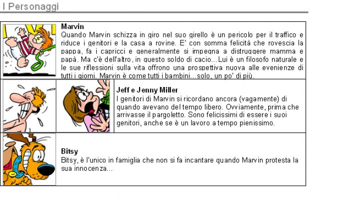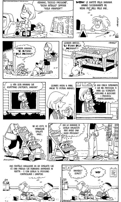 Marvin è nato nel 1982 ed è distribuito su 575 quotidiani nel mondo. Nella grande tradizione del fumetto a strisce americano i bambini hanno sempre avuto un ruolo importante: nel caso specifico, si tratta di un neonato saggio, pungente, astuto e decisamente spiritoso. Marvin non è il classico bambino tenero ed ingenuo, ma, dal suo punto di vista, prende in giro vizi, nevrosi e paradossi del mondo degli adulti, anche se la sua ironia è sempre garbata. Uno dei maggiori pregi di questa striscia è la capacità di far presa sui lettori di ogni età, forse perché Marvin rappresenta l’eterno bambino che c’è in ognuno di noi