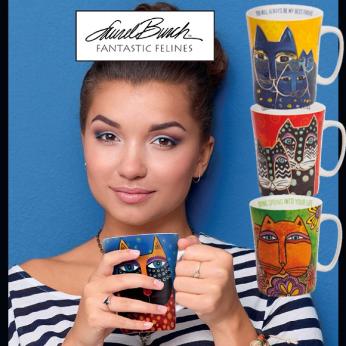 EGAN arricchisce di nuove proposte la collezione LAUREL BURCH: la serie Fantastic Felines aggiunge, oltre alle tazzine caffè, tea e mugs, i nuovi vasi, orologi parete, diffusori per profumazioni ambiente, tutti in ceramica impreziositi con oro zecchino che ne risalta le cromie rendendone ancora più irresistibile l'esplosione dei colori. si aggiungono anche alcuni articoli in tessile: cuscini arredo e pashmina.