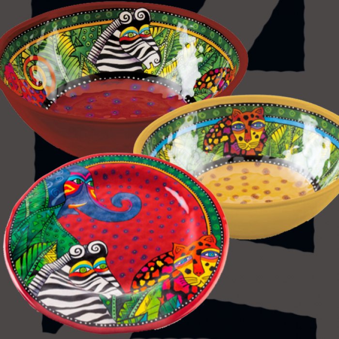 Inoltre, Egan aggiunge la serie Jungle Songs di Laurel Burch che celebra il mondo della foresta e della savana, una collezione molto attraente ed impattante che prevede set caffè e tea, serivizi completi di piatti, bottiglie termiche e pasmina.